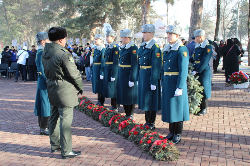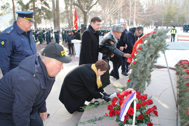 День начался с официального торжественного митинга в Парке Победы имени Даира Асанова у памятника Блокадников Ленинграда «Мужеству ленинградцев - благородству кыргызстанцев» - символа братства, взаимопомощи и общей судьбы народов в годы Великой Отечественной войны.