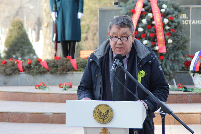 На митинге выступили Чрезвычайный и Полномочный Посол Российской Федерации в Кыргызстане Сергей Вакунов, заместитель министра обороны Кыргызской Республики Алмазбек Кулмурзаев, депутат Жогорку Кенеша Гуля Кожокулова, председатель Кыргызского общества блокадников Ленинграда Марат Кутанов.