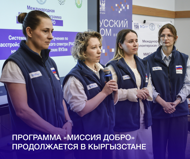 В Кыргызстане продолжается международная волонтерская программа «Миссия ДОБРО», направленная на поддержку детей с расстройствами аутистического спектра (РАС), детским церебральным параличом (ДЦП) и синдромом Дауна. В рамках программы в страну прибыли четыре высококвалифицированных российских специалиста в области психиатрии, психологии, дефектологии и инклюзивного образования.