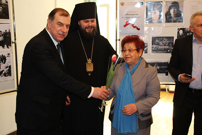 Об огромной роли женщин на войне и множестве совершенных ими подвигов на фронте, в партизанских отрядах и тылу говорили также на открытии выставки епископ Бишкекский и Кыргызстанский Даниил и руководитель Кыргызского общества блокадников Ленинграда Анна Кутанова.