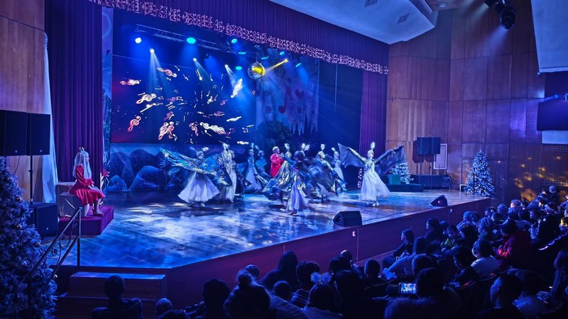 Праздничная программа была насыщенной и разнообразной. Перед ребятами выступили артисты народного образцового ансамбля «Улыбка», чьи танцевальные номера подарили залу атмосферу веселья и задора. Не обошлось и без главных символов Нового года - Деда Мороза и Снегурочки, которые вовлекали детей в игры, хороводы и новогодние забавы.