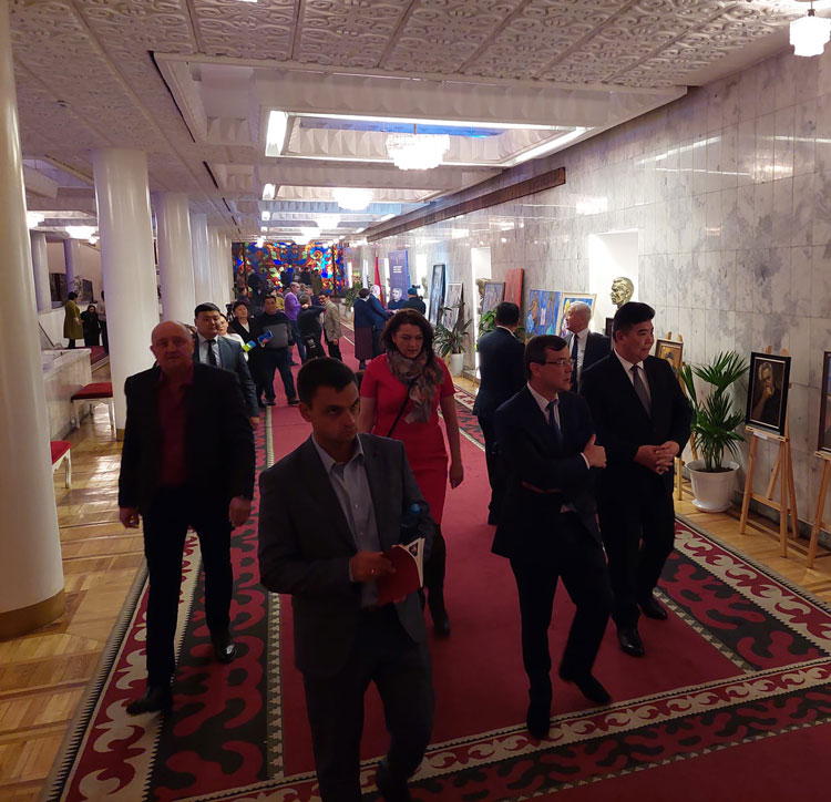 В рамках церемонии закрытия перекрестного года также прошла выставка работ кыргызских художников, окончивших учебные заведения Санкт-Петербурга.