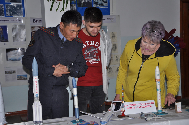 12 апреля 2023 года Общественное объединение Кыргызской республики «Русский культурный центр «Гармония» в 10:00 открыли выставку в Средней школе №2 г. Токмак «Утро космической эры», посвящённую Международному дню полёта человека в космос (День космонавтики).На выставке также представлены макеты запускаемых космических аппаратов, книги о космосе, газеты которые побывали в космосе и даже земля со стартовой площадки космодрома Байконур.