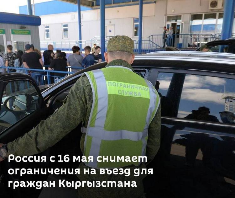 Россия с 16 мая снимает ограничения на въезд для граждан Кыргызстана по сухопутной границе, сообщается на сайте правительства РФ.