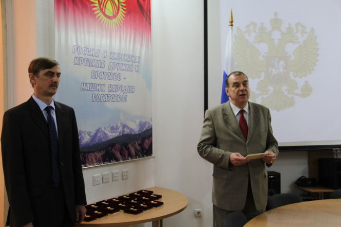 29 апреля в Российском центре науки и культуры в Бишкеке состоялась торжественная церемония вручения памятных знаков Правительства Санкт-Петербурга блокадникам Ленинграда, в честь 70-летия полного освобождения Ленинграда от фашистской блокады. Чествование блокадников было организовано Посольством России в Киргизии, представительством Россотрудничества в Киргизской Республике совместно с общественным объединением «Киргизское общество блокадников Ленинграда».Встречу открыл Чрезвычайный и Полномочный Посол Российской Федерации в Киргизской Республике Андрей Крутько. К собравшимся блокадникам он обратился со словами благодарности за то, что они смогли донести до нынешних поколений историю трагедии и подвига блокадников. Затем Посол вручил каждому блокаднику памятную медаль с пожеланием здоровья и долголетия.