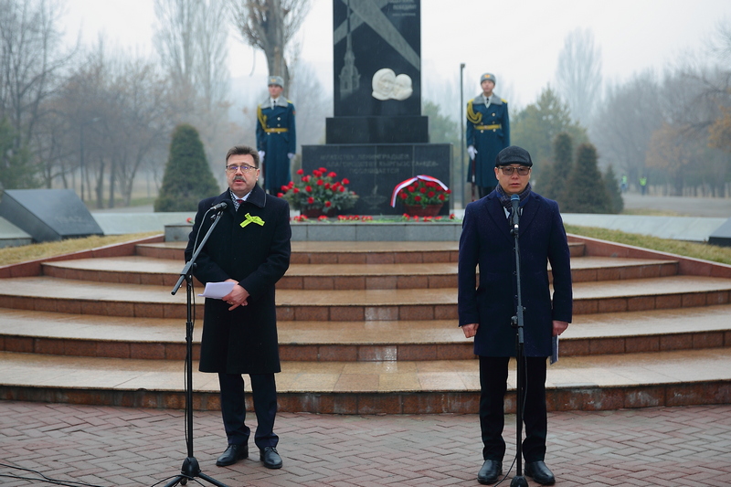 К участникам митинга обратился Посол России в Кыргызстане Сергей Вакунов: «Блокада Ленинграда навсегда войдет в историю человечества как одно из самых трагических событий Великой Отечественной войны. Голод, холод, не прекращающиеся обстрелы стали страшным испытанием для жителей города. Мужественные ленинградцы стойко выдержали 872 дня, не отдав родной город фашистам. Мы преклоняем головы перед стойкостью защитников Ленинграда, мужеством жителей города, бескорыстием, душевной щедростью и состраданием простых кыргызстанцев, деливших с эвакуированными ленинградцами хлеб и кров. Мы преклоняем головы перед великой женщиной, ставшей символом материнства, ответственности, доброты и щедрости –Токтогон Алтыбасаровой, которая приютила и выходила 150 детишек блокадного Ленинграда. Мы чтим героизм и подвиги наших предков, и наша святая обязанность – пронести память об их подвигах, Победе, об их стойкости и мужестве для наших последующих поколений».