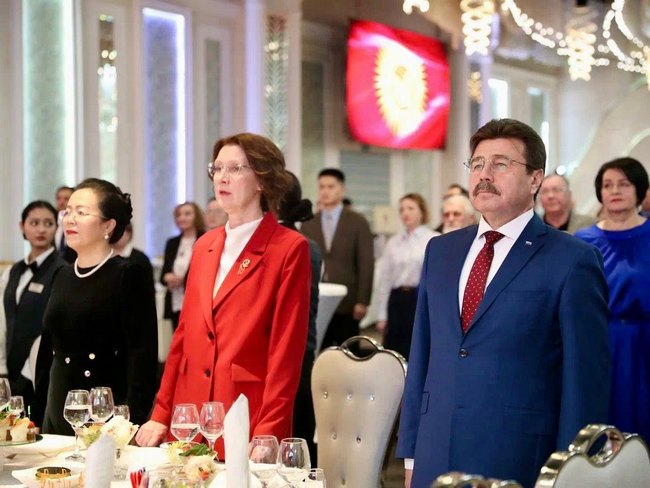 Посол России Сергей Вакунов в торжественной обстановке вручил удостоверения к государственным наградам Российской Федерации потомкам ветеранов, а также Почётные грамоты Посольства за личный вклад в развитие российско-кыргызского сотрудничества.